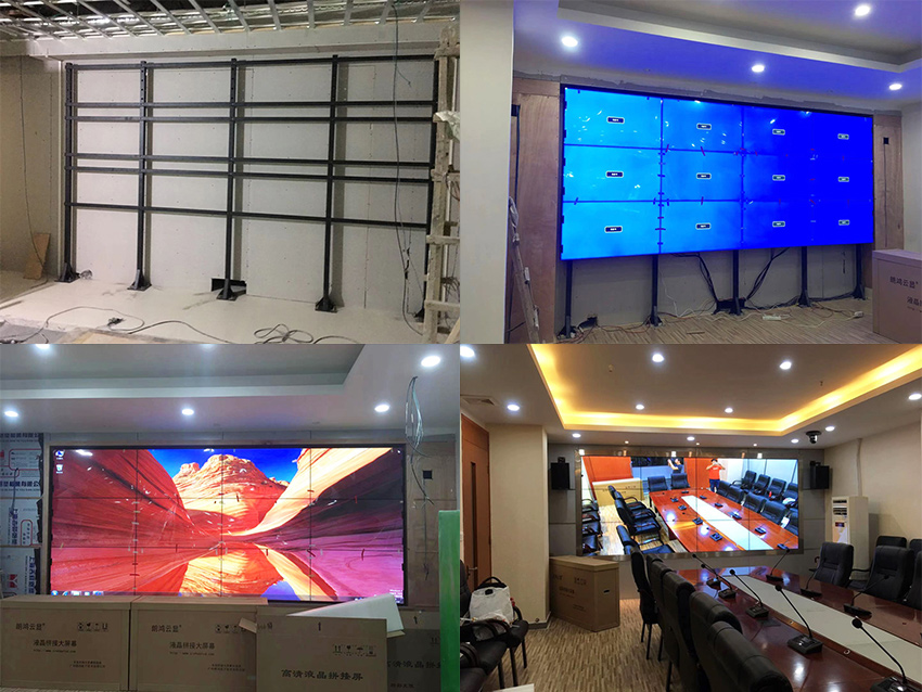 此次項目,采用信弘超窄邊3.5mm拼縫,46寸液晶拼接屏,落地式支架安裝,打造一套4×3拼接的大屏智能會議系統。
