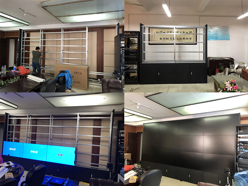 此次項目,采用信弘超窄邊3.5mm拼縫,總計24塊55寸液晶拼接屏,機柜安裝和落地支架安裝,打造了兩套拼接大屏。