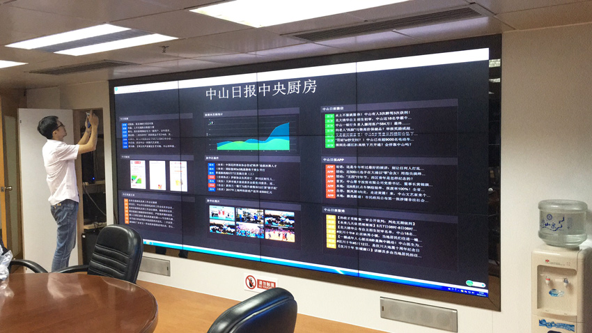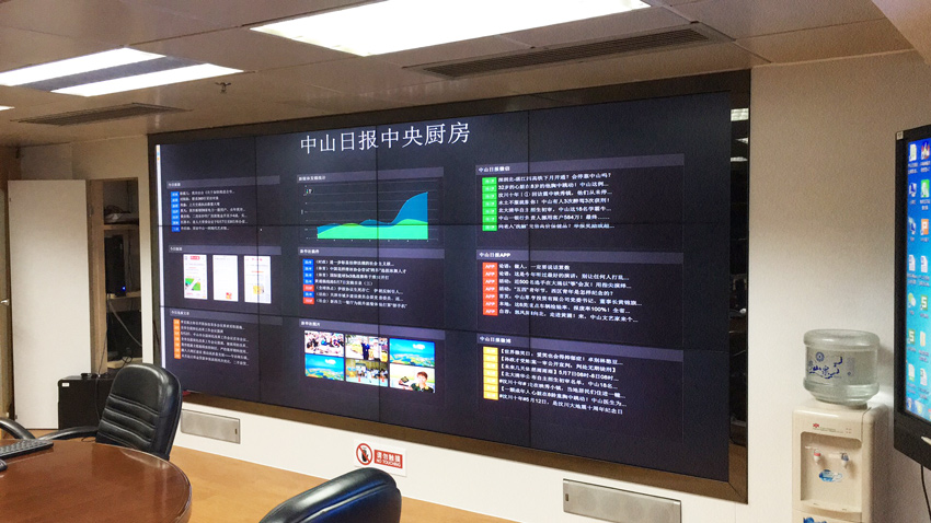新媒體4k拼接屏_中山日?qǐng)?bào)社中央廚房_信弘55寸拼接屏項(xiàng)目,新聞生產(chǎn)更有效率,更符合當(dāng)代新聞傳播的特點(diǎn),更好的滿足用戶(hù)需求,從而加強(qiáng)內(nèi)容供給側(cè)改革,加速日?qǐng)?bào)社向新媒體轉(zhuǎn)型。