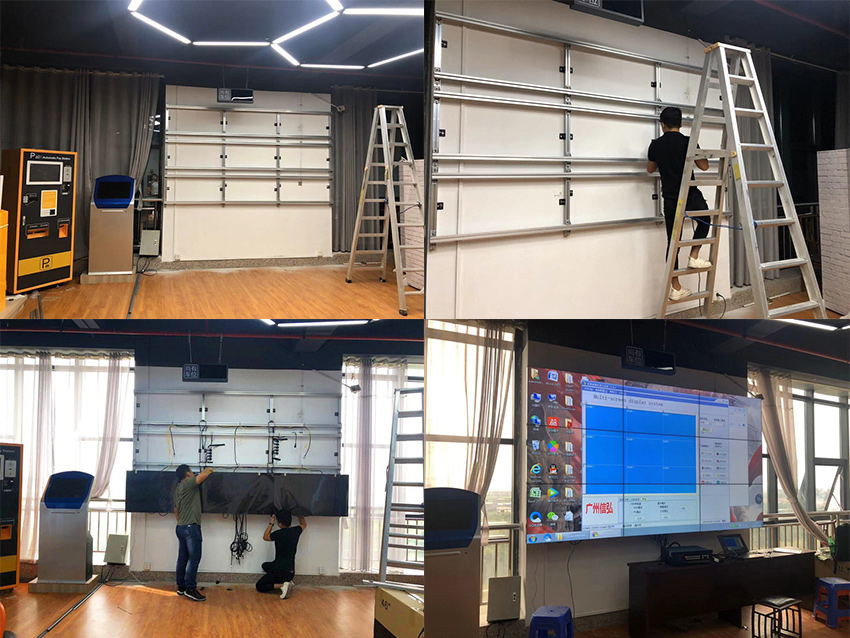 其實懂行的人就知道,壁掛式支架看起來是很簡單,但對技術人員而言卻是很大的考驗,因為壁掛式的安裝方式空間極小,沒有足夠的空間給你去調整屏幕的前后位置,而要達到整齊劃一的屏幕安裝效果,需要技術人員的專業技巧和極大的耐心。信弘公司做事準則是每每安裝的一套拼接屏都要把它打造成該行業的樣板工程。
