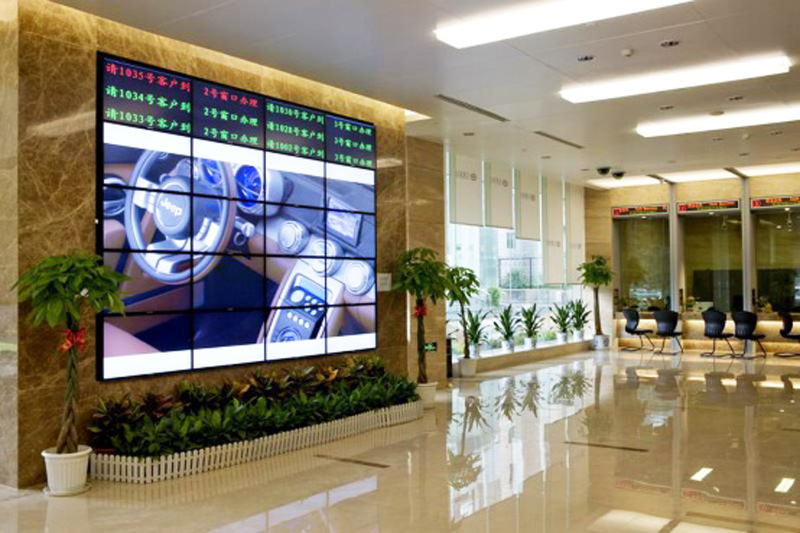 液晶拼接屏入駐銀行內部,不僅加強了銀行信息傳播能力,提升了客戶的信任度,也給銀行的安全帶去了強有力的保障!